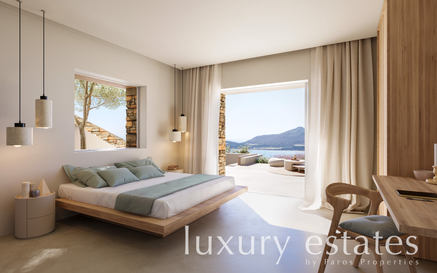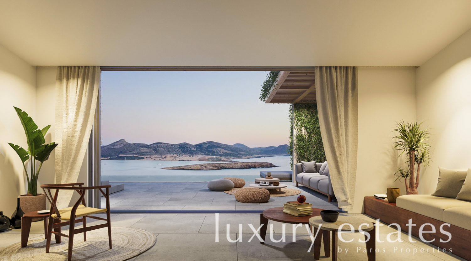 Located within a prestigious boutique enclave of only four luxury residences, this fully autonomous and detached villa occupies an elevated and highly desirable setting in Agios Georgios, Antiparos, commanding breathtaking, unobstructed views over Despotiko Island and the Aegean Sea.